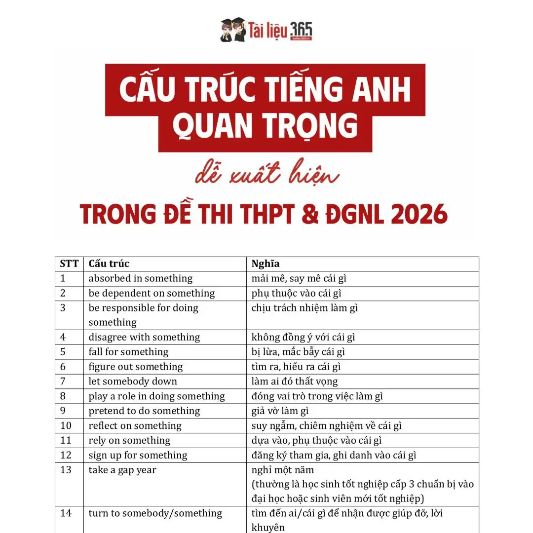 Đây là những cấu trúc thường xuyên xuất hiện trong các đề thi định kì; đề thi thử và có khả năng cao xuất hiện trong đề thi THPT & ĐGNL 2026 nên các em nhớ học kĩ để nâng cao điểm số nhé