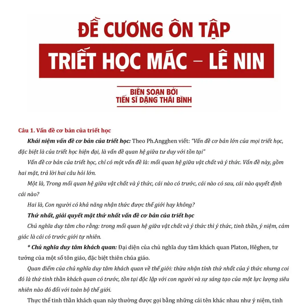 Tailieu365.vn giới thiệu đến quý thầy, cô giáo và các em sinh viên Đề cương Triết học Mác Lênin được biên soạn bởi tiến sĩ Đặng Thái Bình (Học viện Tài Chính)